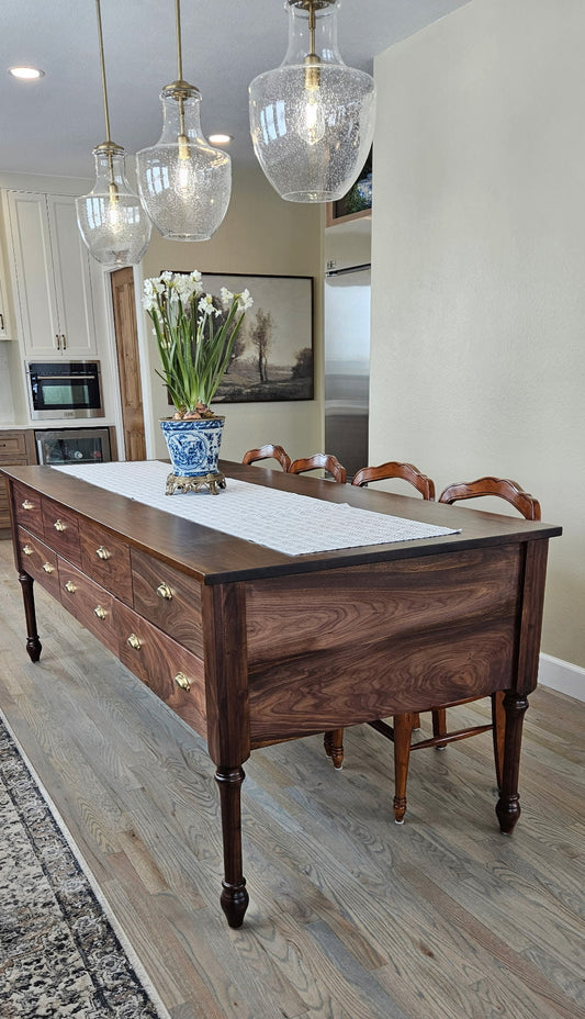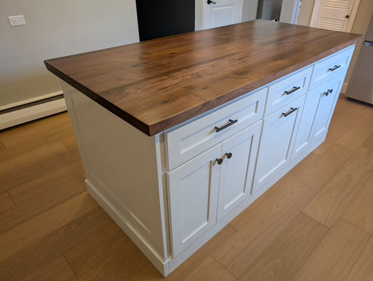 Beautiful custom island! Above and beyond what I was expecting. Craftsmanship is top notch. Beautiful color and they worked with me on stains, hardware and changing the design around. We opted for a stone top which we haven’t picked out yet. So impressed with the result! Looking forward to ordering a matching kitchen table!”